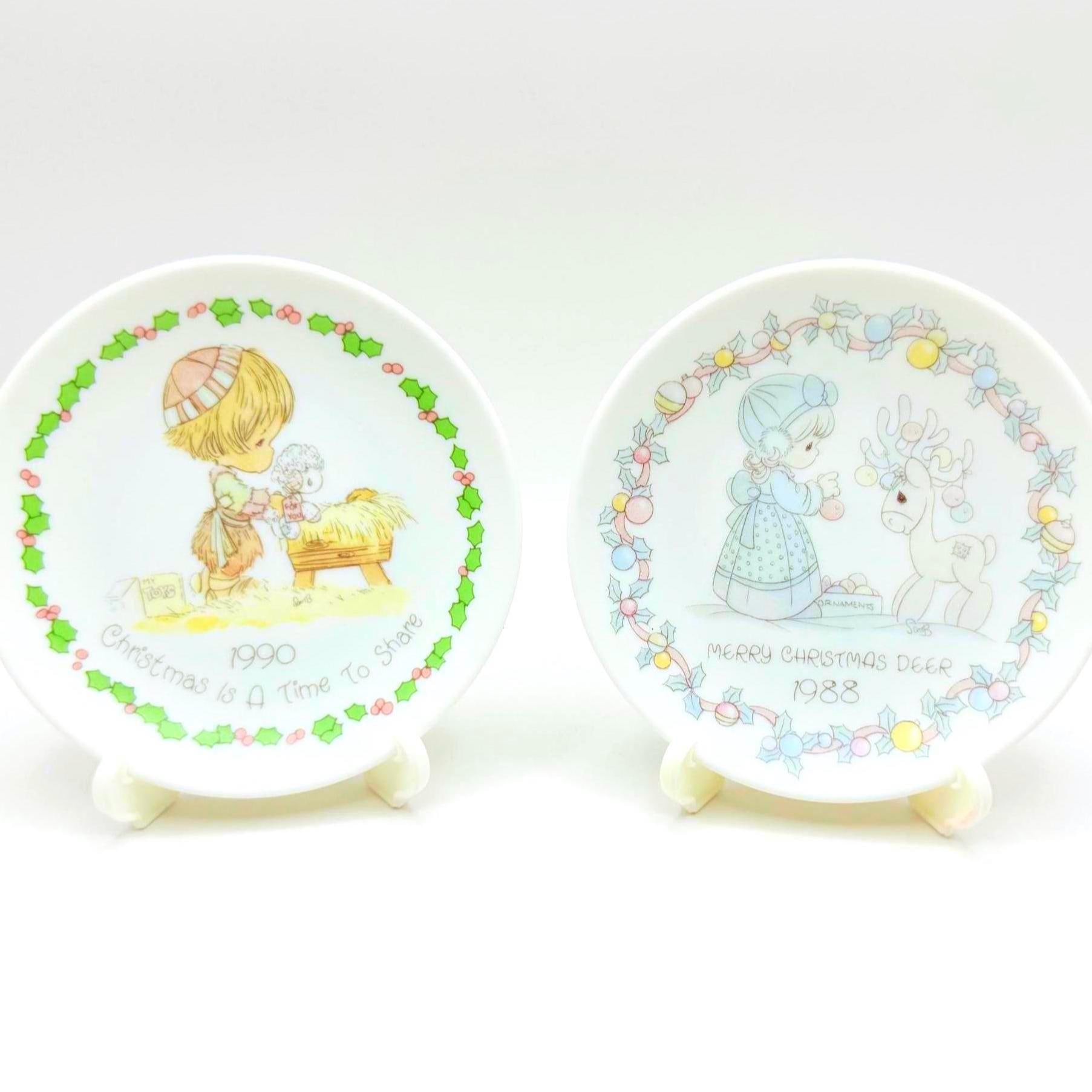 Collectible vintage Precious Moments mini Christmas plates with stands - Choose your favorite design to add charm to your holiday decor. These adorable plates make perfect gifts for loved ones or a lovely addition to your own collection. Limited availability, so grab yours now!