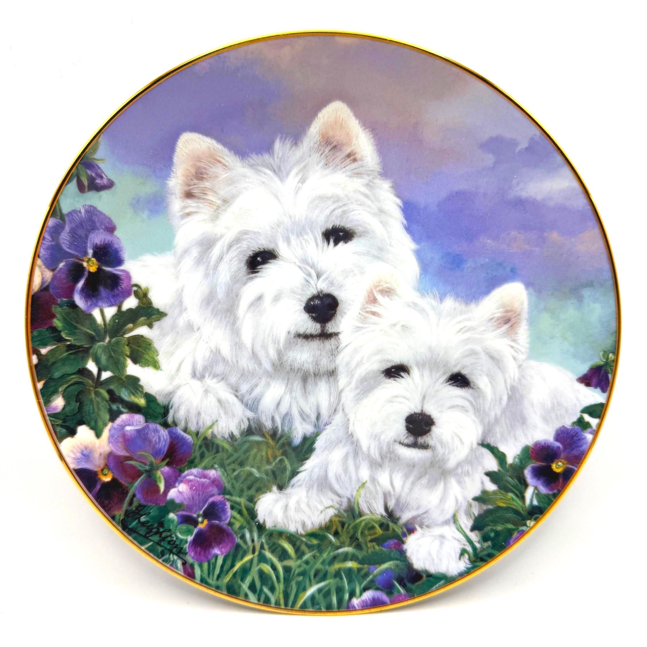 Celebrate the unconditional love of a mother and her pup with this charming collector's plate, 'Mother's Love', featuring two West Highland white terriers nestled next to pansies. This plate captures the sweet personality and loyal spirit of Westie's in stunning detail.