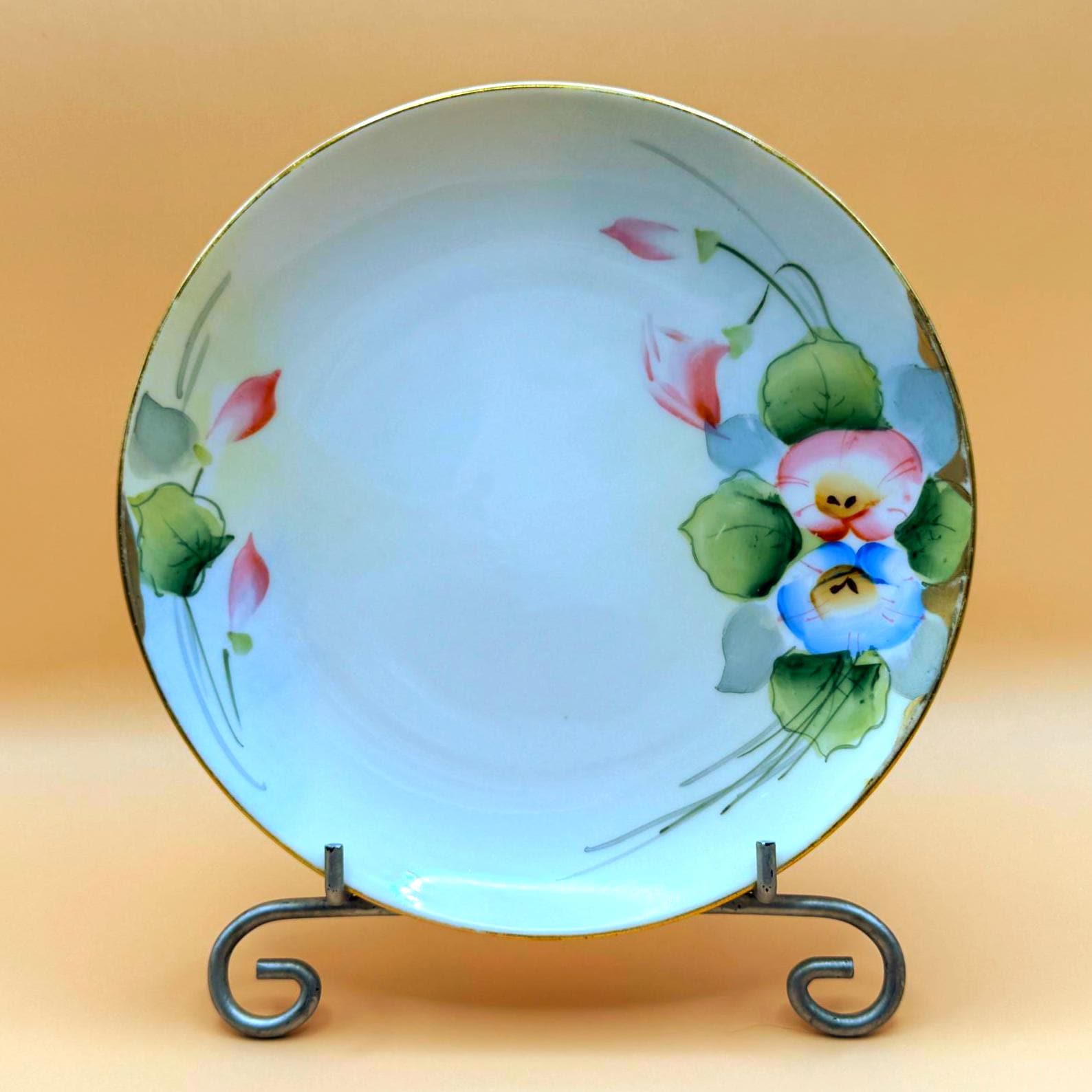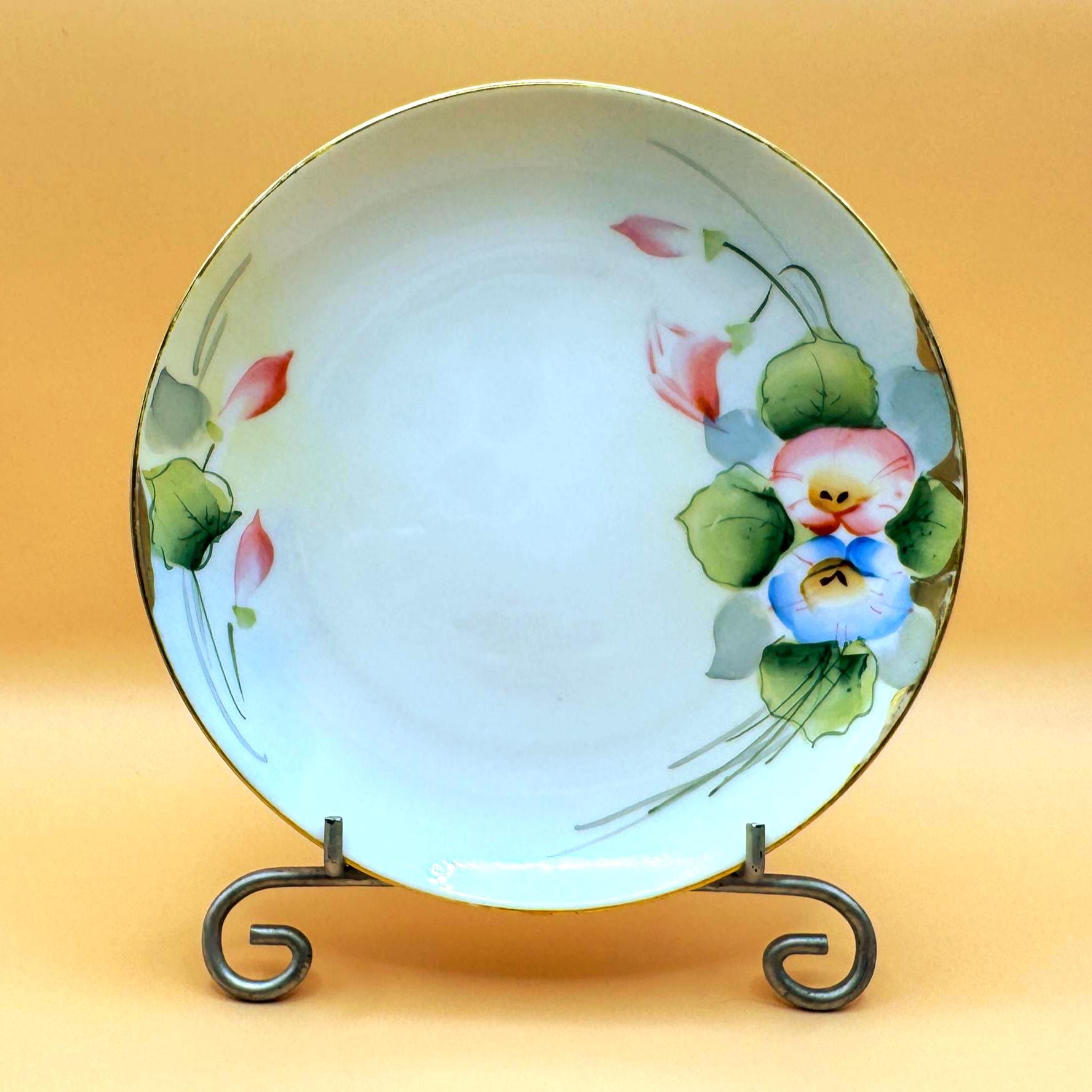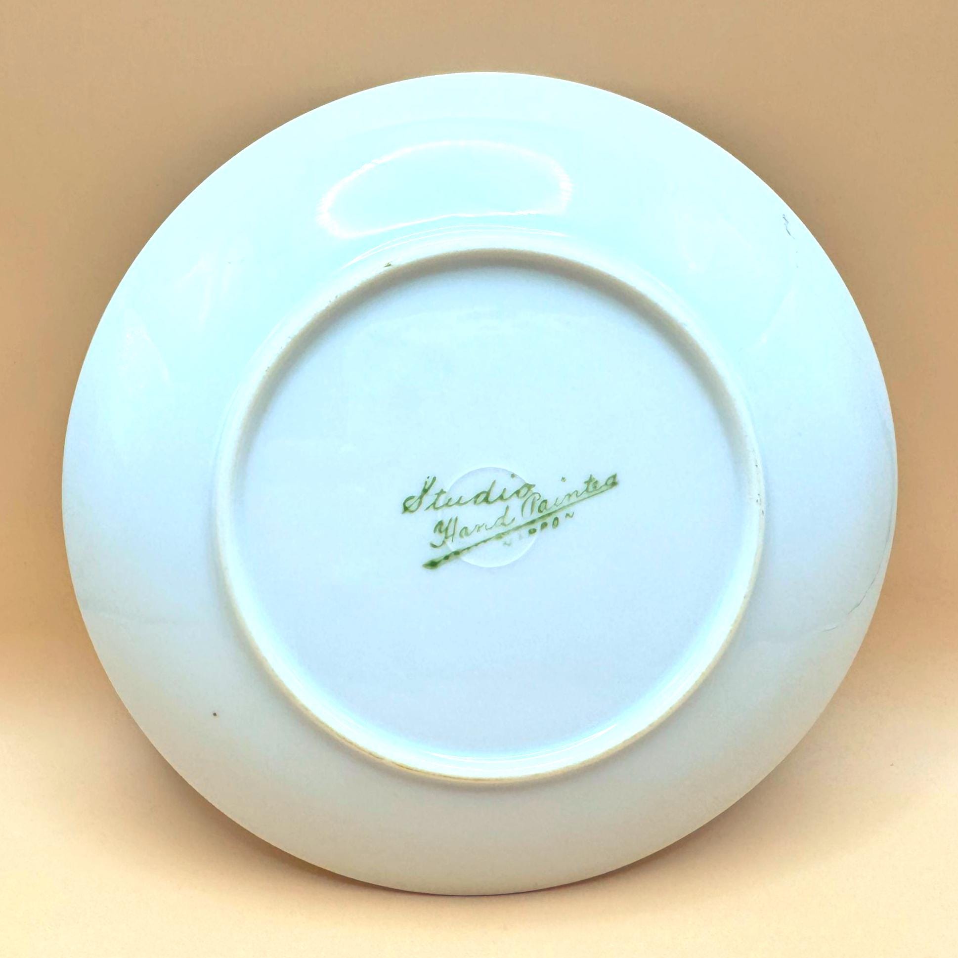 This plate is marked “Studio Hand Painted Nippon” on the underside, confirming its age and origin. Finished with a gold gilt rim, it is a lovely example of Nippon craftsmanship and displays beautifully in a china cabinet, on a plate stand, or as part of an antique porcelain collection.