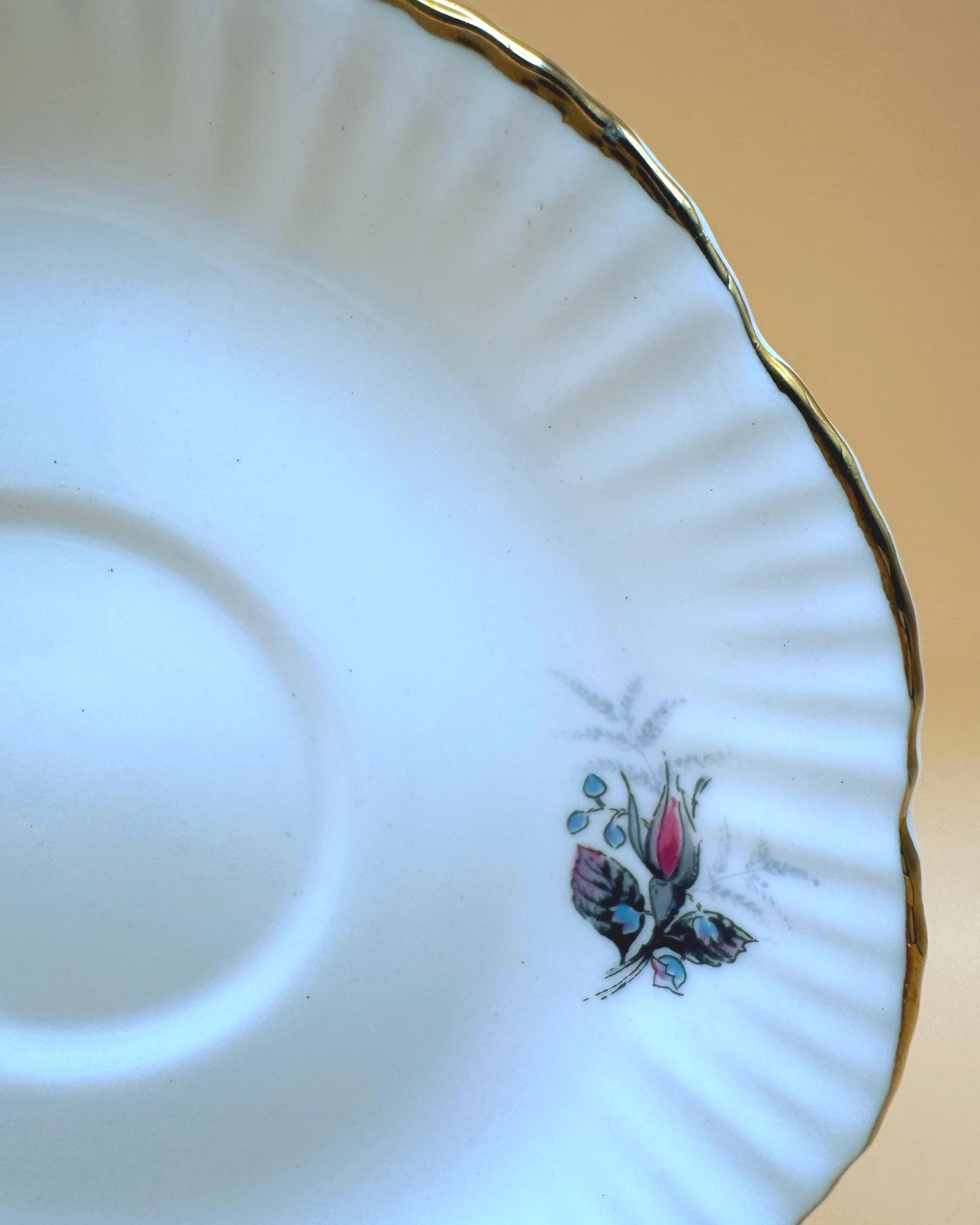The softly scalloped edges, graceful gold trim, and charming angular handle give this piece a refined yet cozy feel—perfect for slow mornings, afternoon tea, or a thoughtful gift for someone who loves romantic vintage decor. Lightweight and lovely in the hand, it’s as enjoyable to use as it is to display.