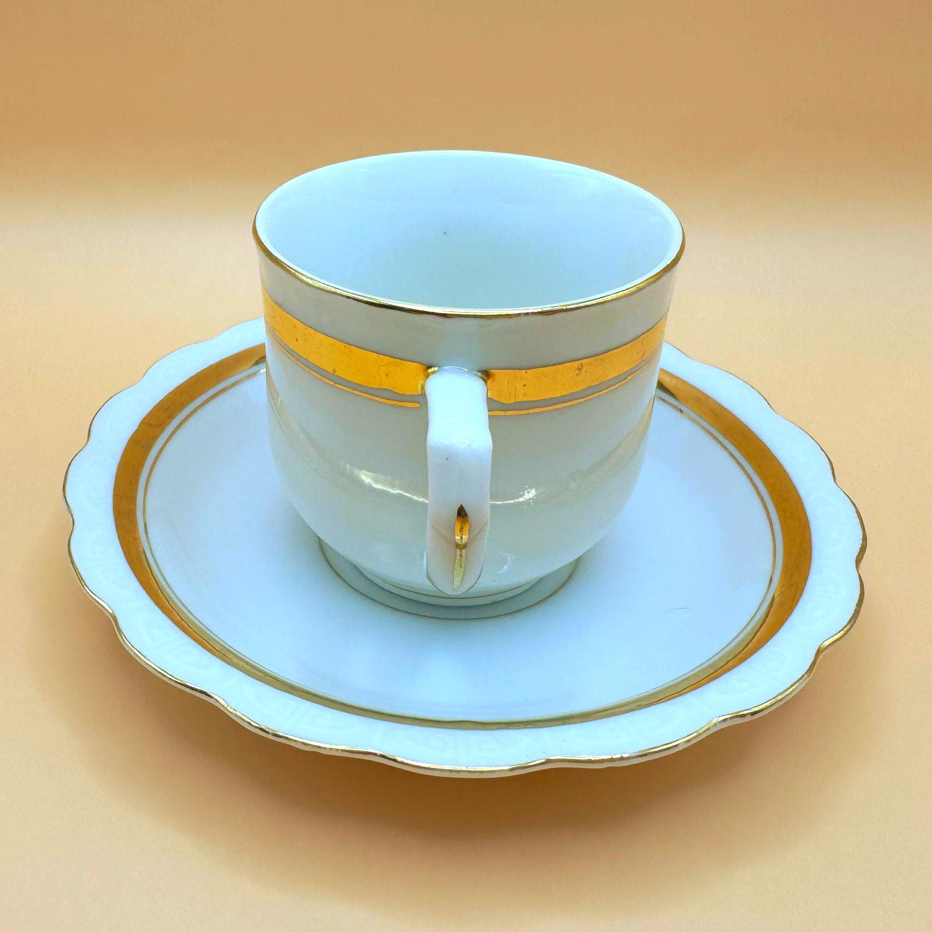 The gently flared cup shape and delicate handle give this set a refined, old-world charm—perfect for slow mornings, afternoon tea, or a timeless addition to a vintage china collection. Its simplicity makes it especially appealing to lovers of elegant, understated decor.
