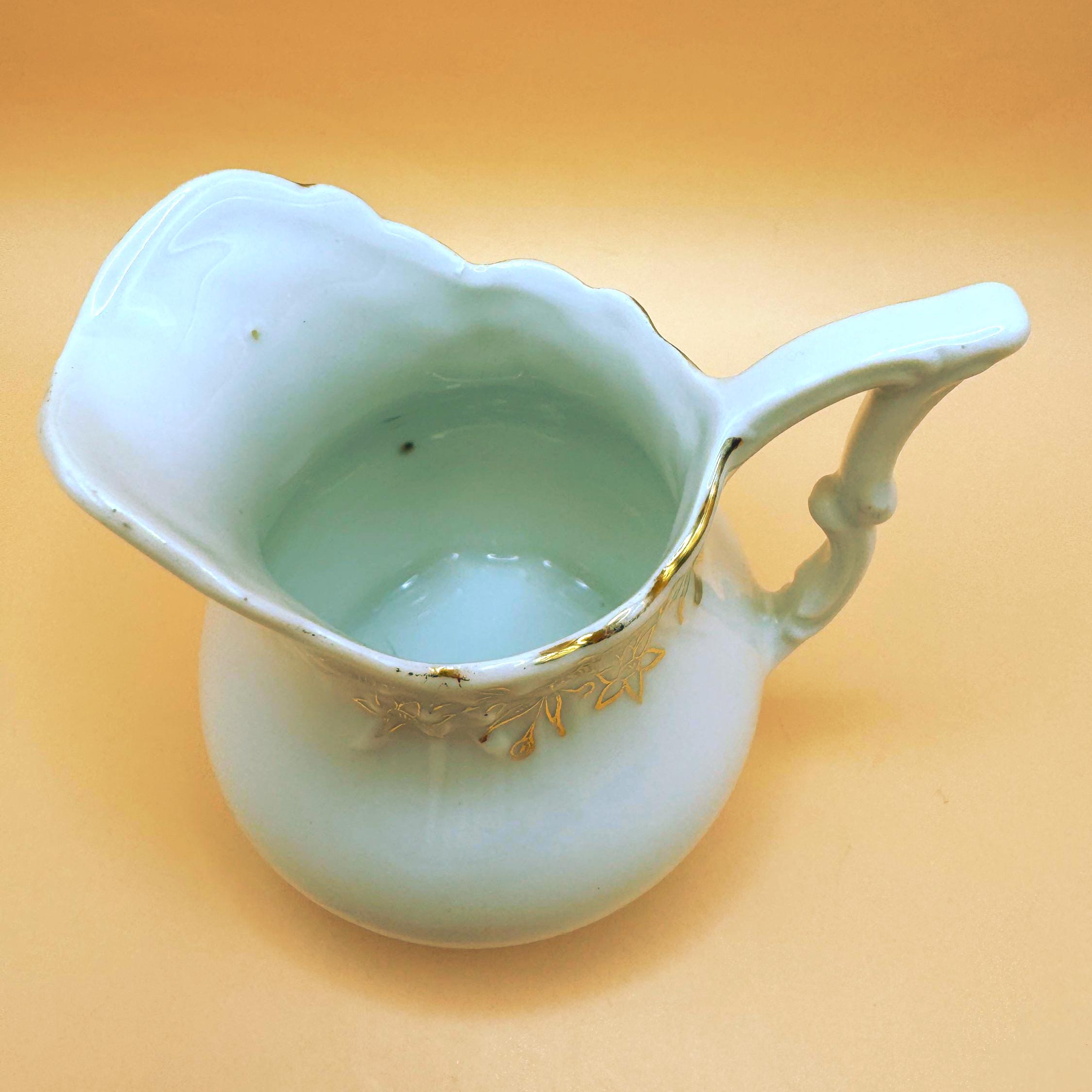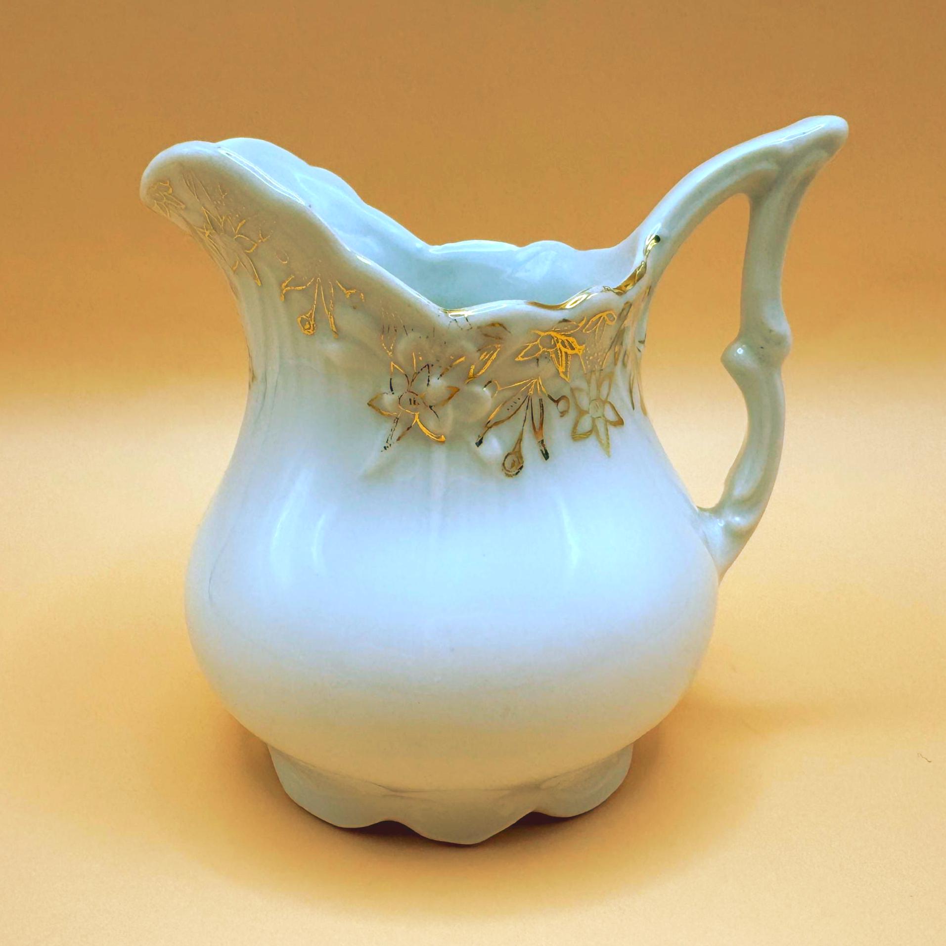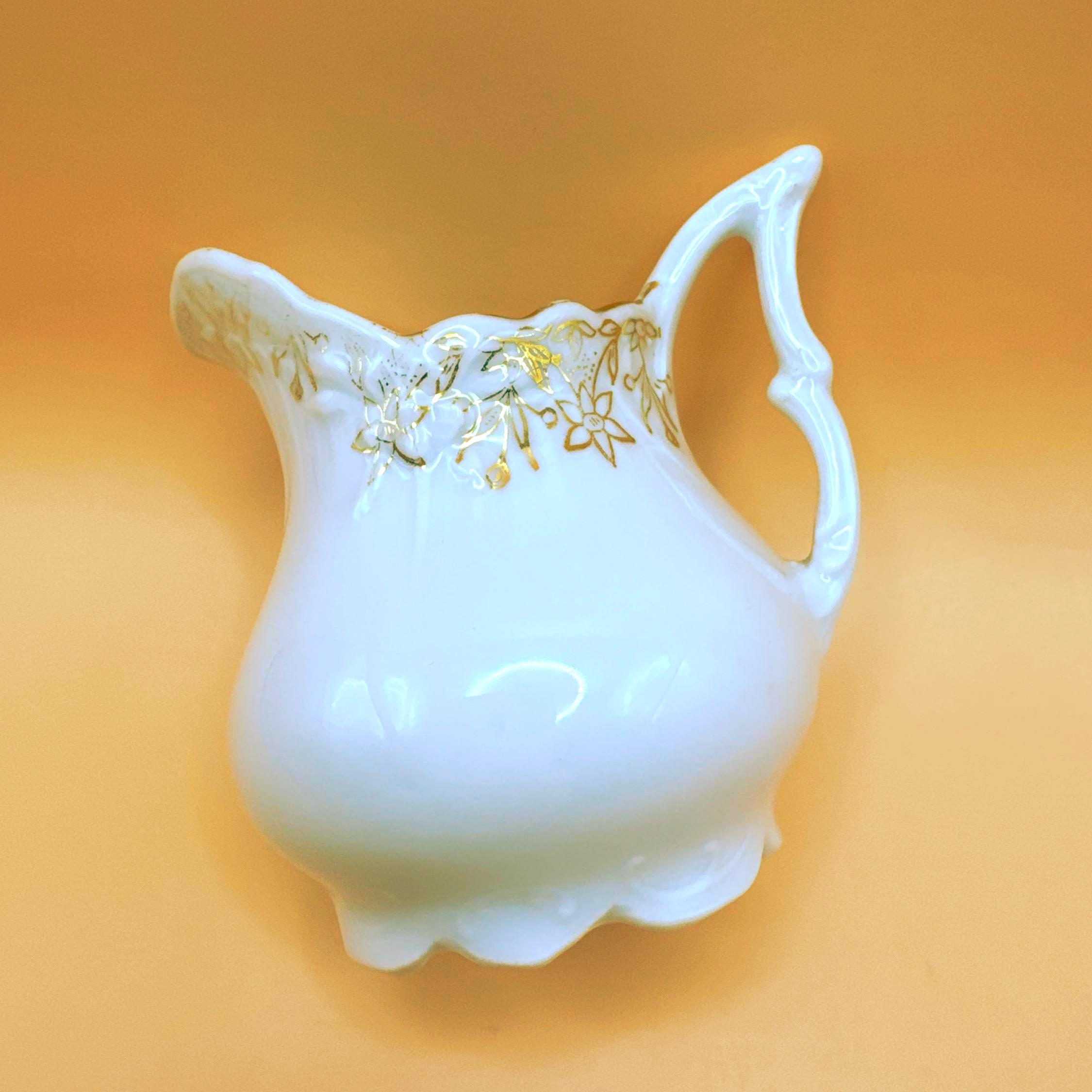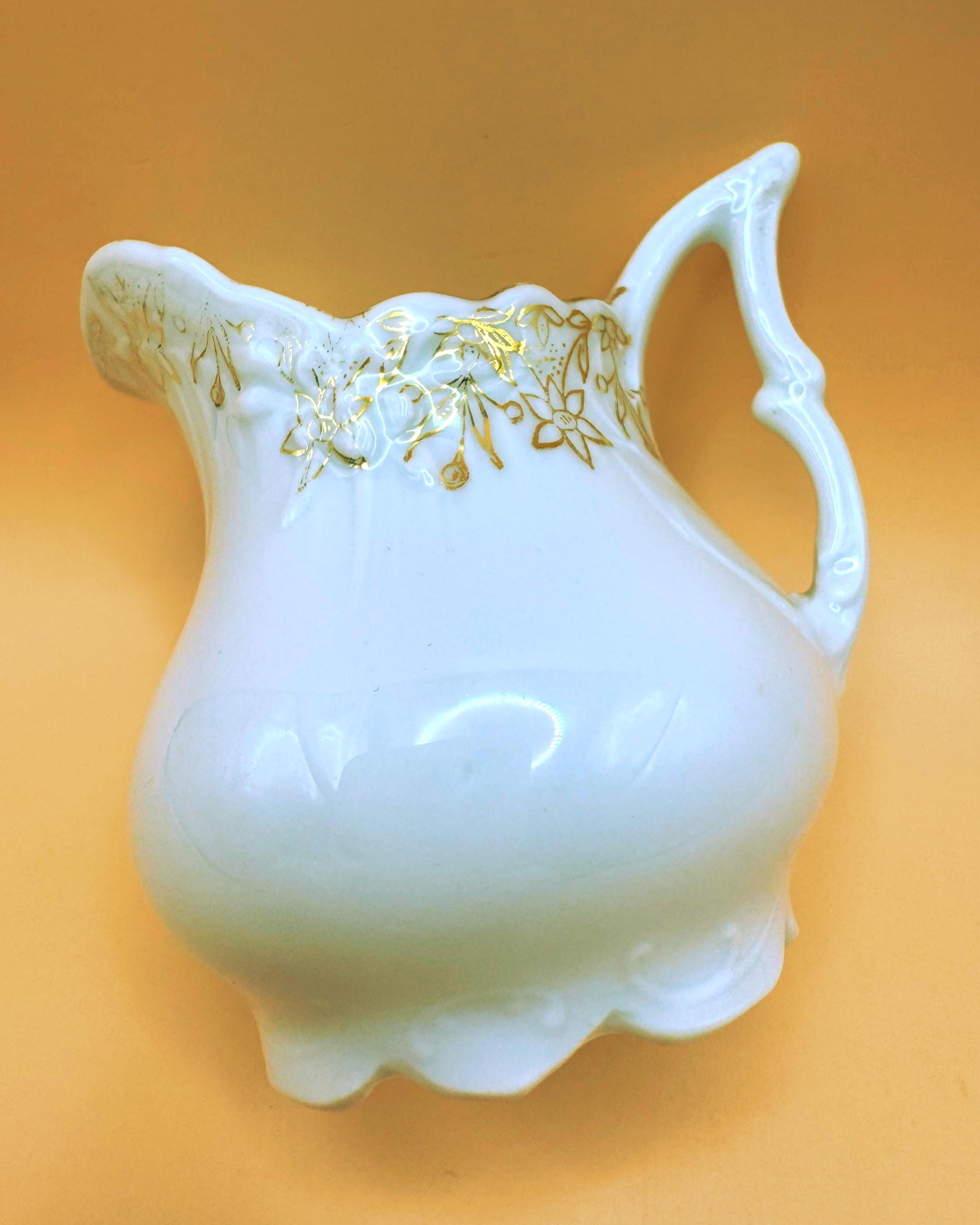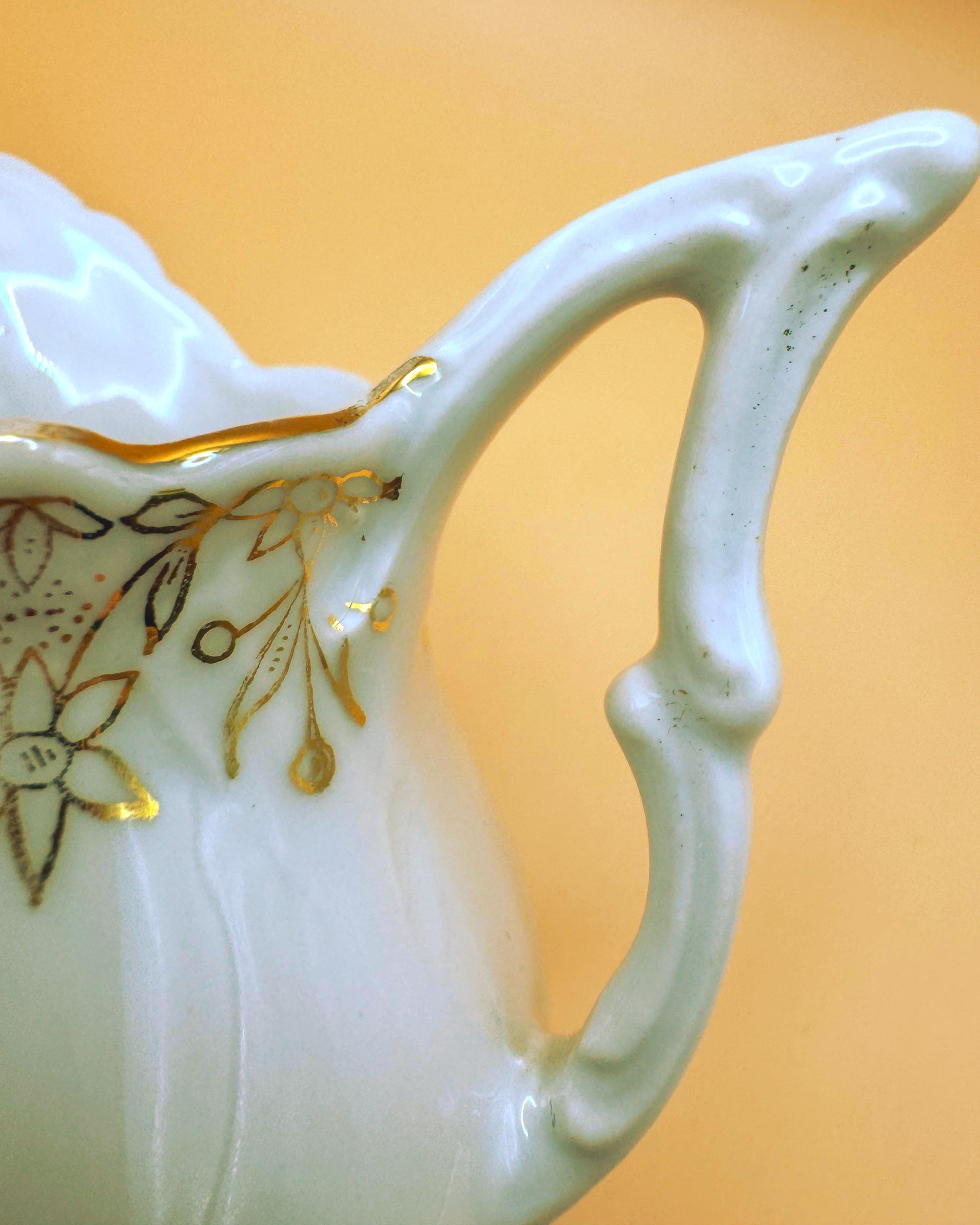 Unmarked, yet rich in character, the form and decorative gold work are consistent with pieces produced in the early 1900s–1920s, when graceful silhouettes and gold embellishment were favored. Its petite size makes it ideal for serving cream or milk with tea, or for display as part of an antique china or tea table collection.