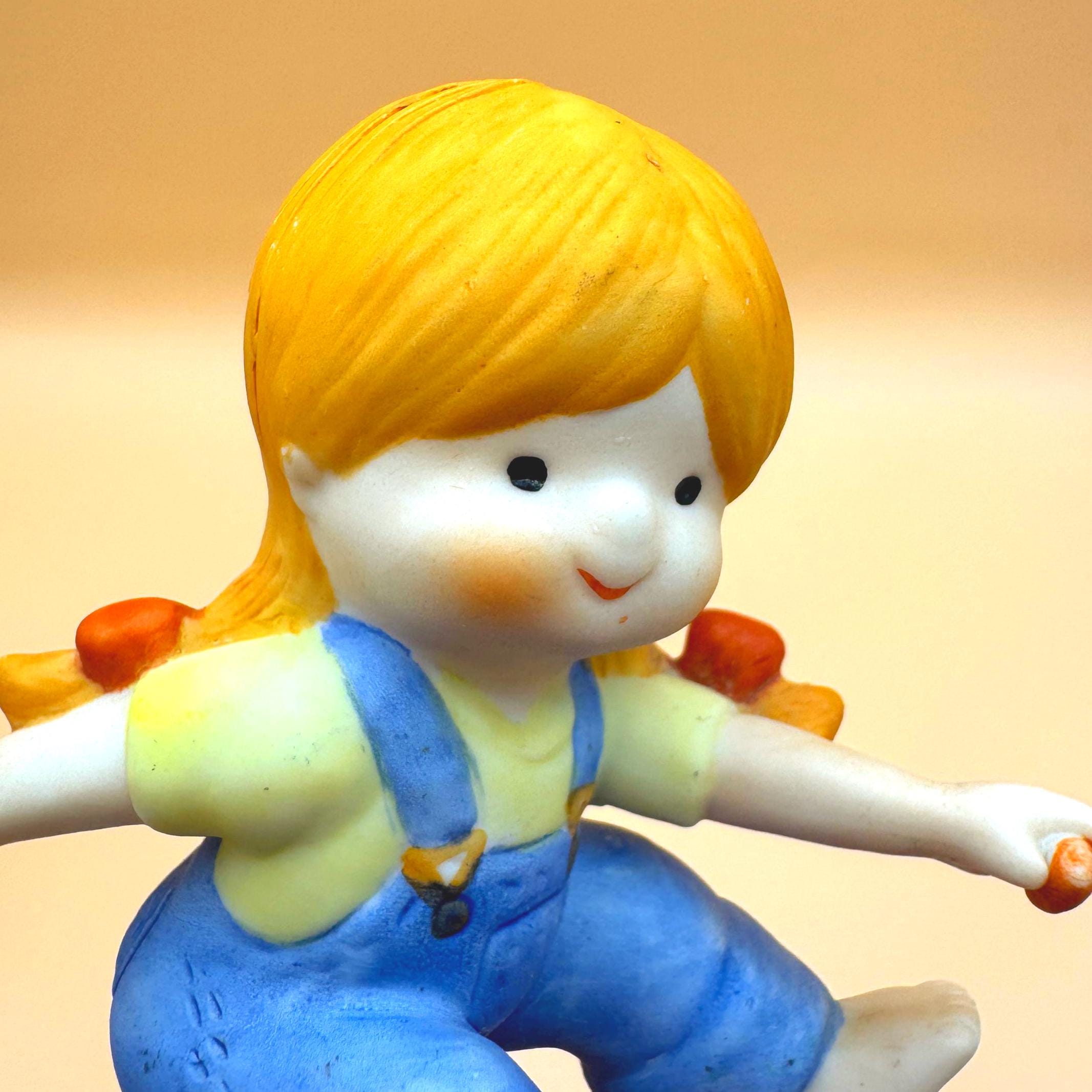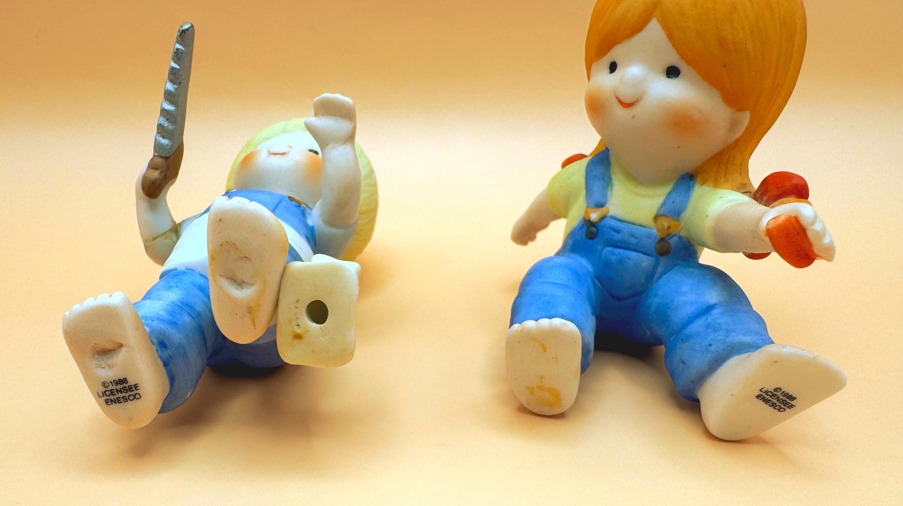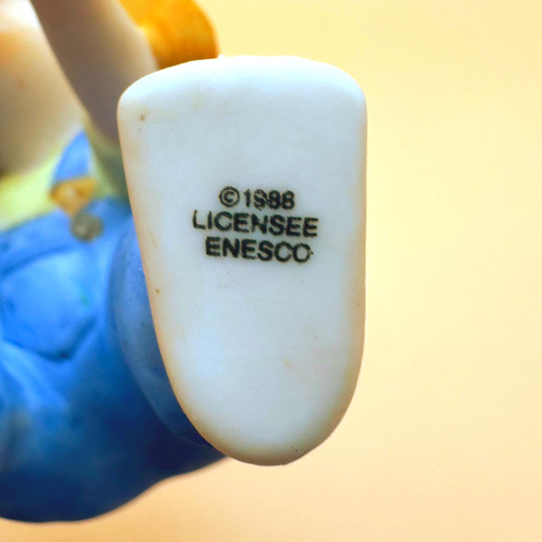 Made in 1988, these bisque porcelain figurines showcase Enesco’s beloved whimsical design and soft matte finish. Displayed together, they create a warm, nostalgic scene that works beautifully in a nursery, child’s room, farmhouse-style space, or vintage figurine collection.