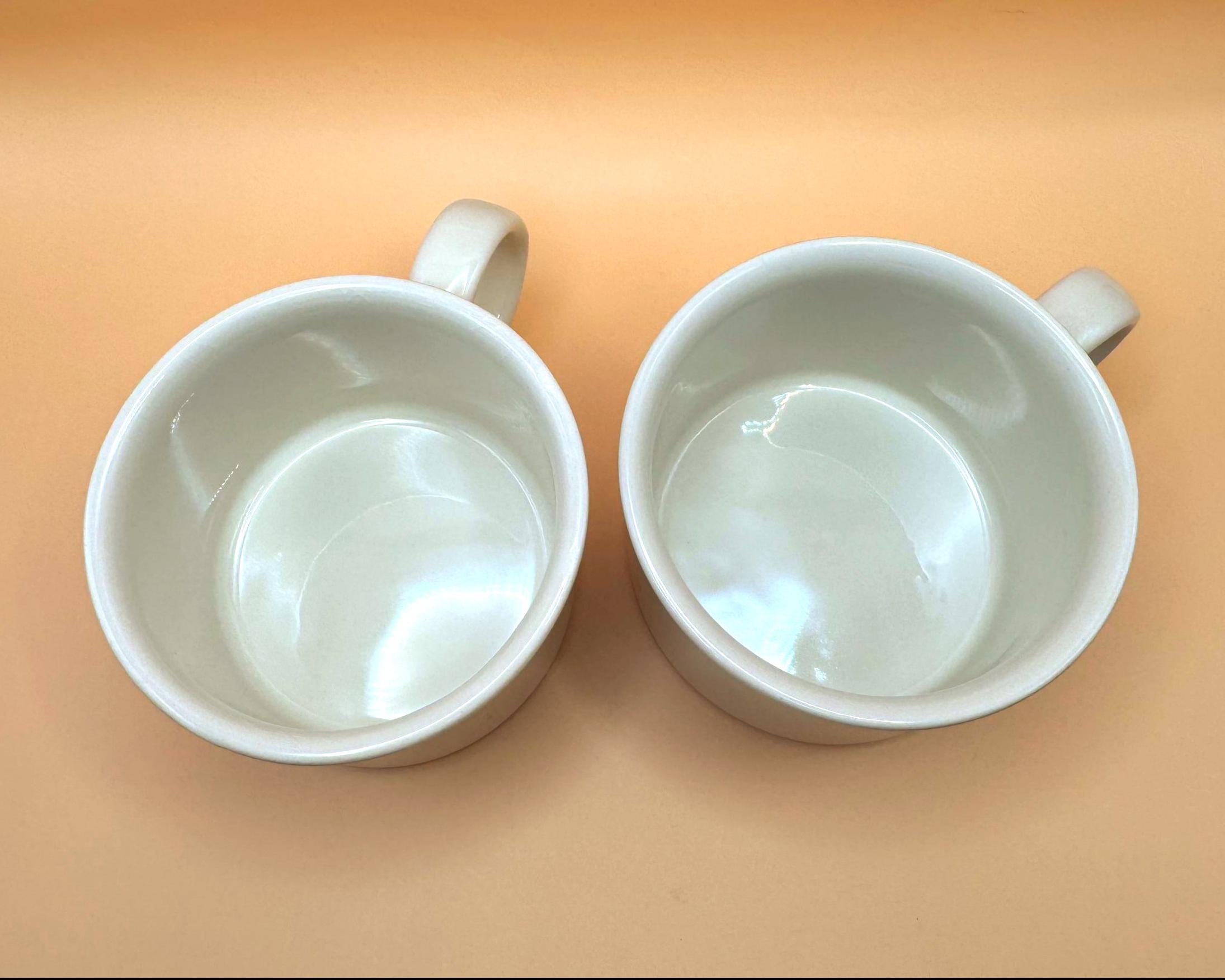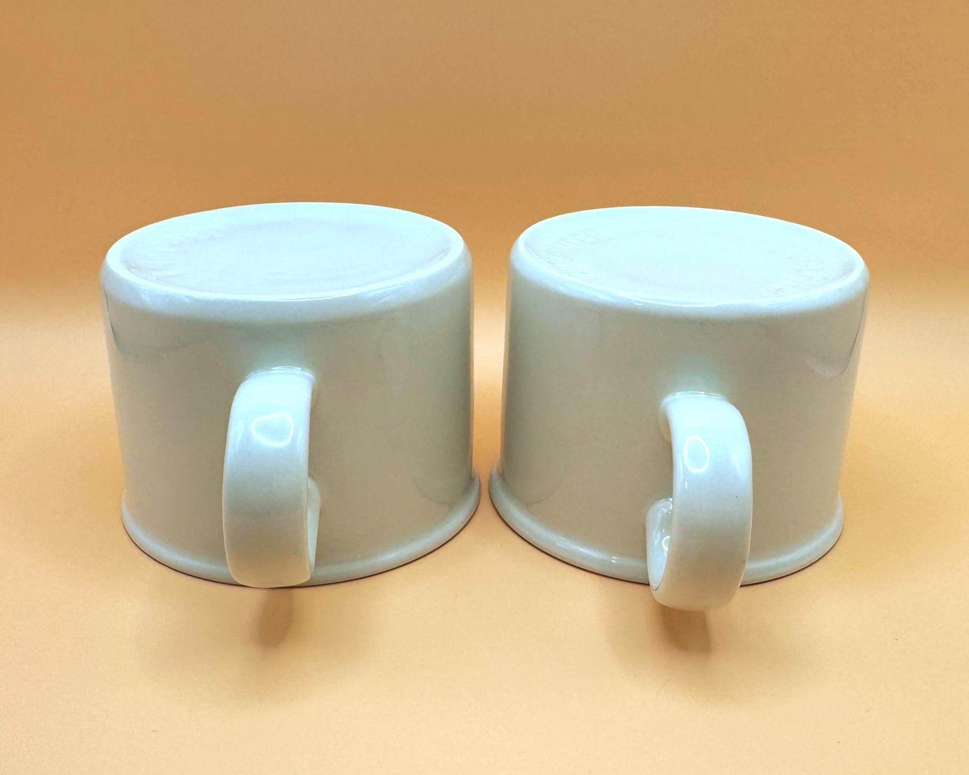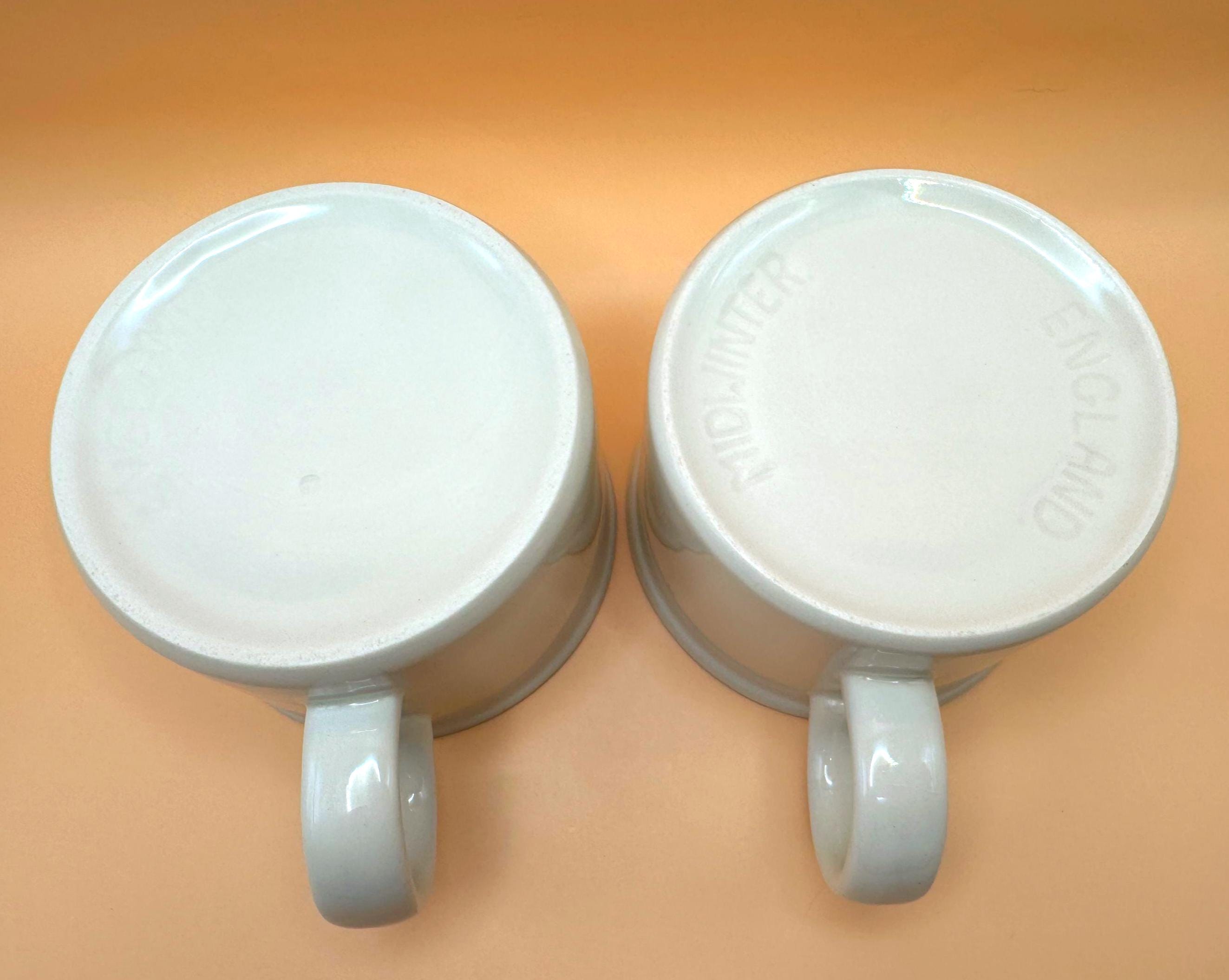 A classic pair of mid-century English café mugs by Midwinter Pottery, produced in the heart of Stoke-on-Trent.