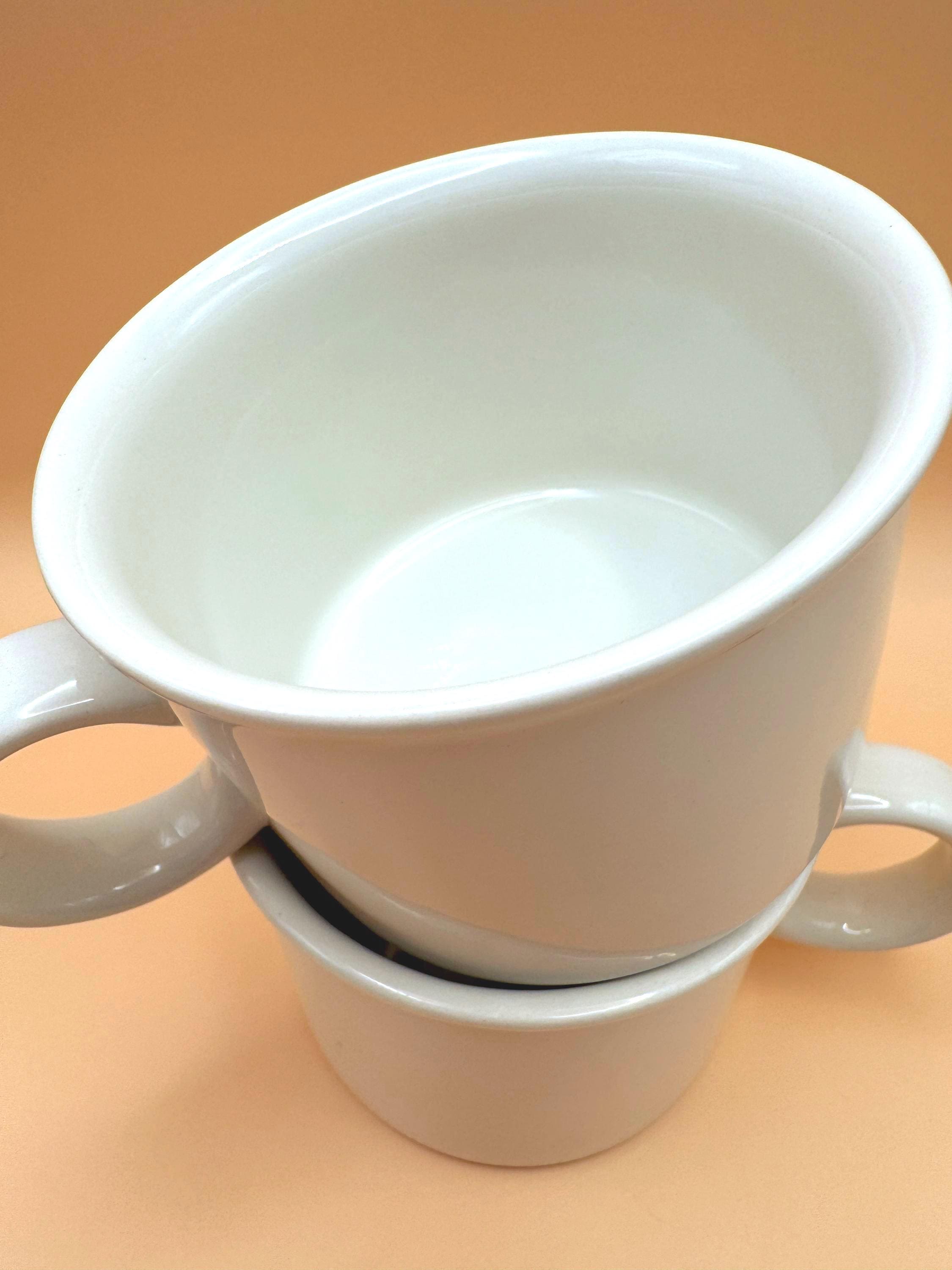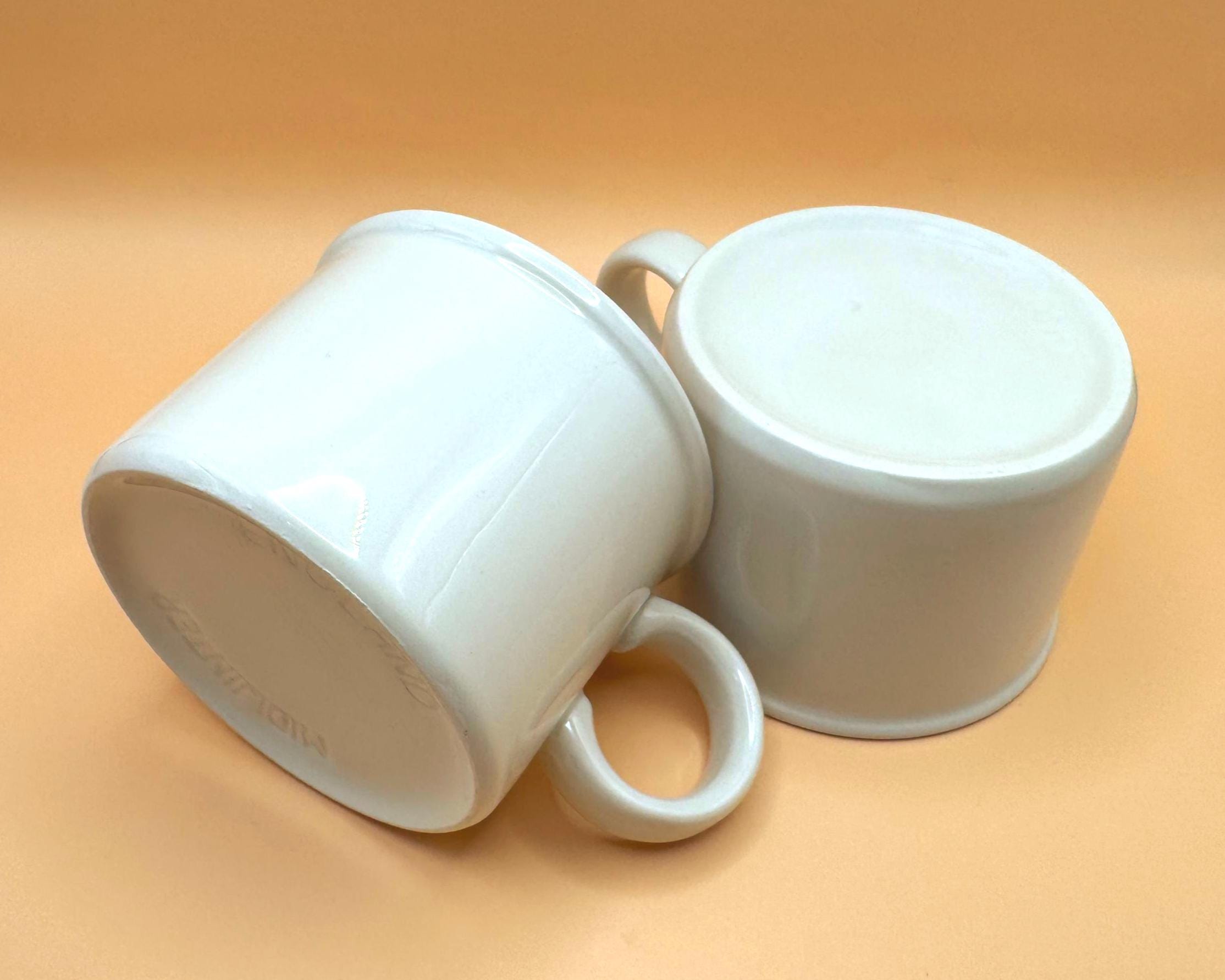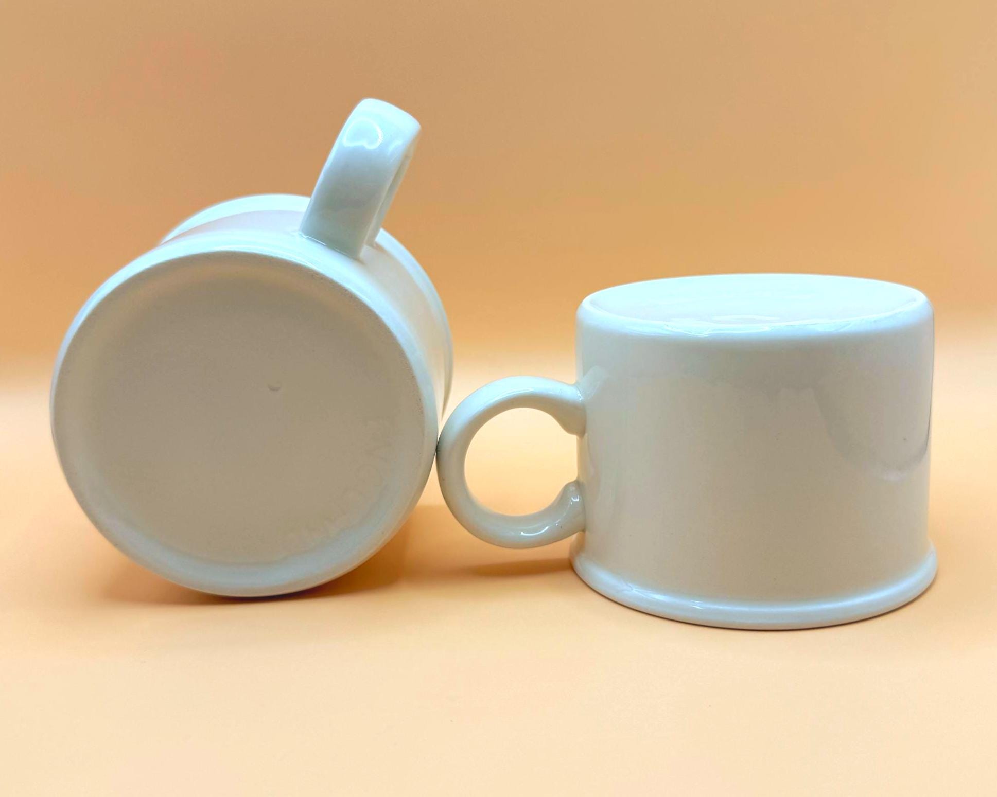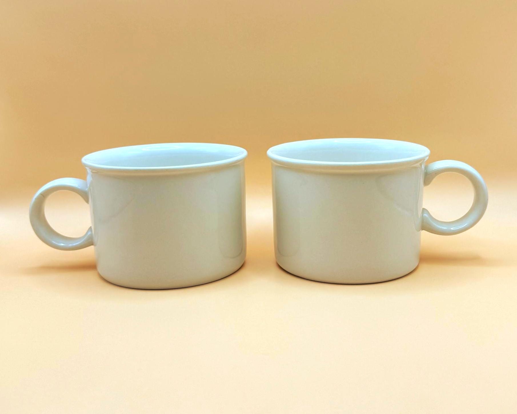 These sturdy, straight-sided white mugs have that unmistakable 1960s British coffee bar feel — simple, substantial, and timeless. Their clean silhouette blends effortlessly into farmhouse kitchens, minimalist spaces, or an ironstone collection.