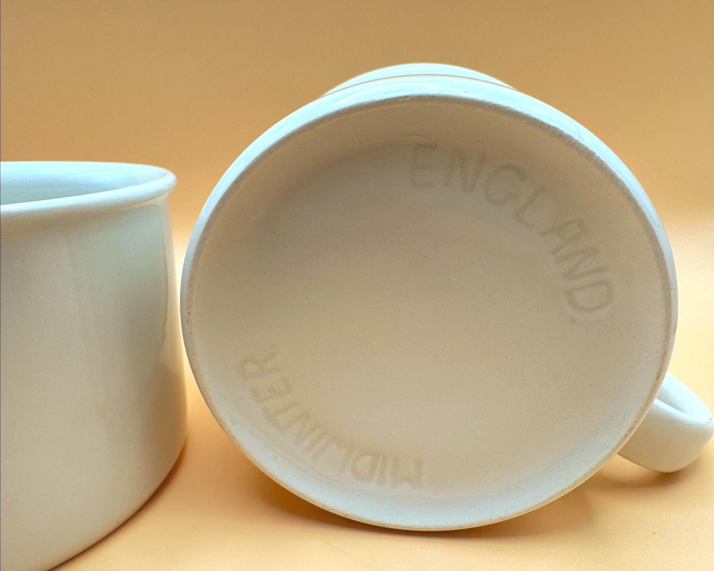 One mug is impressed “Midwinter England” and the other “England,” both from the same mid-1960s production era and identical in form and glaze.