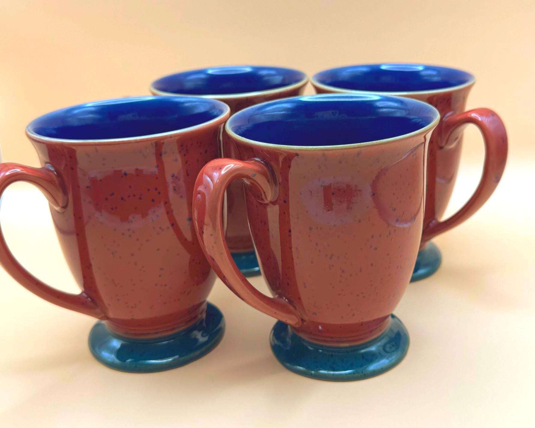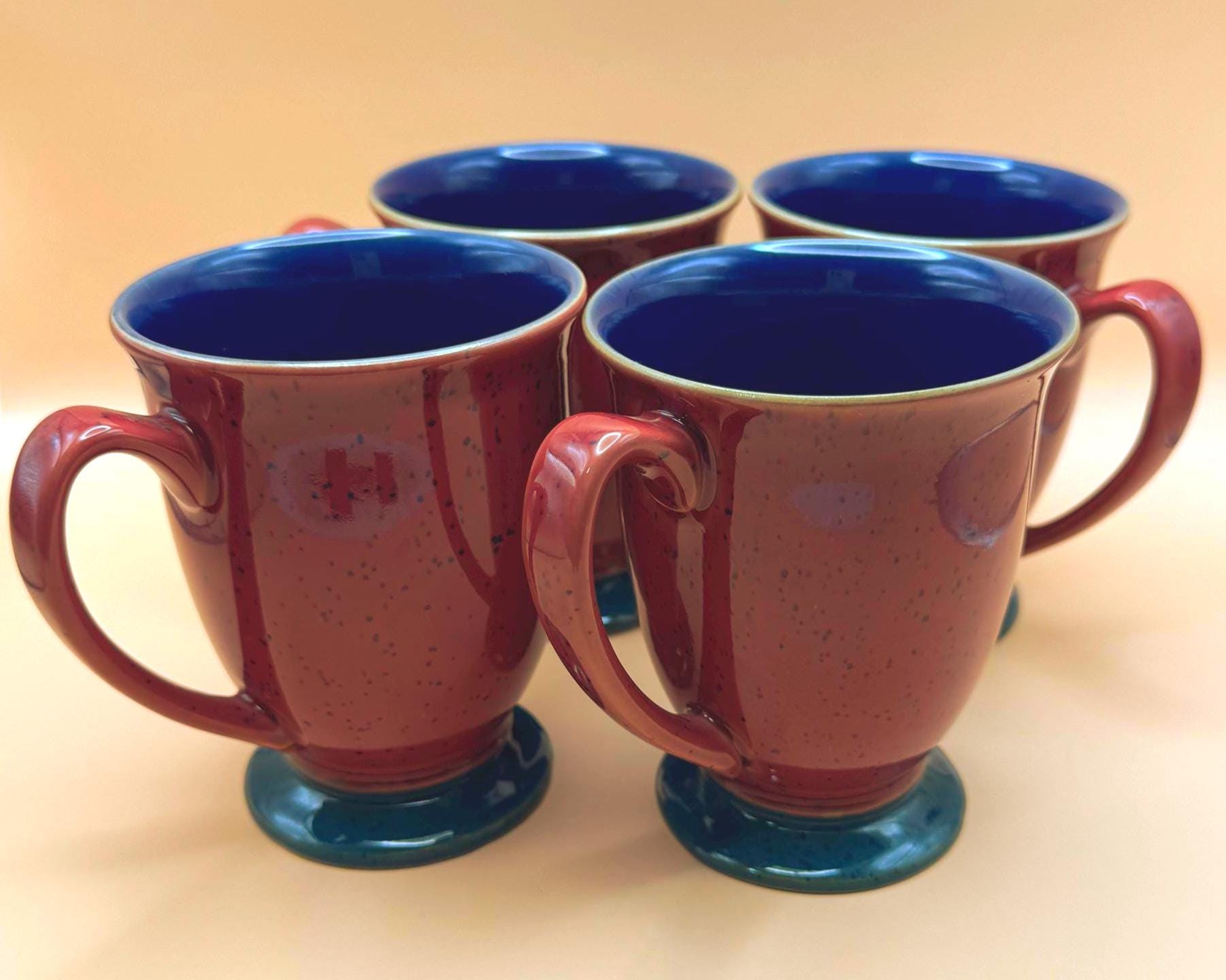 Add a touch of classic British pottery to your kitchen with this beautiful set of four Denby England stoneware pedestal mugs. Known for their exceptional craftsmanship and durability, Denby pieces are beloved for everyday use while still offering timeless design.