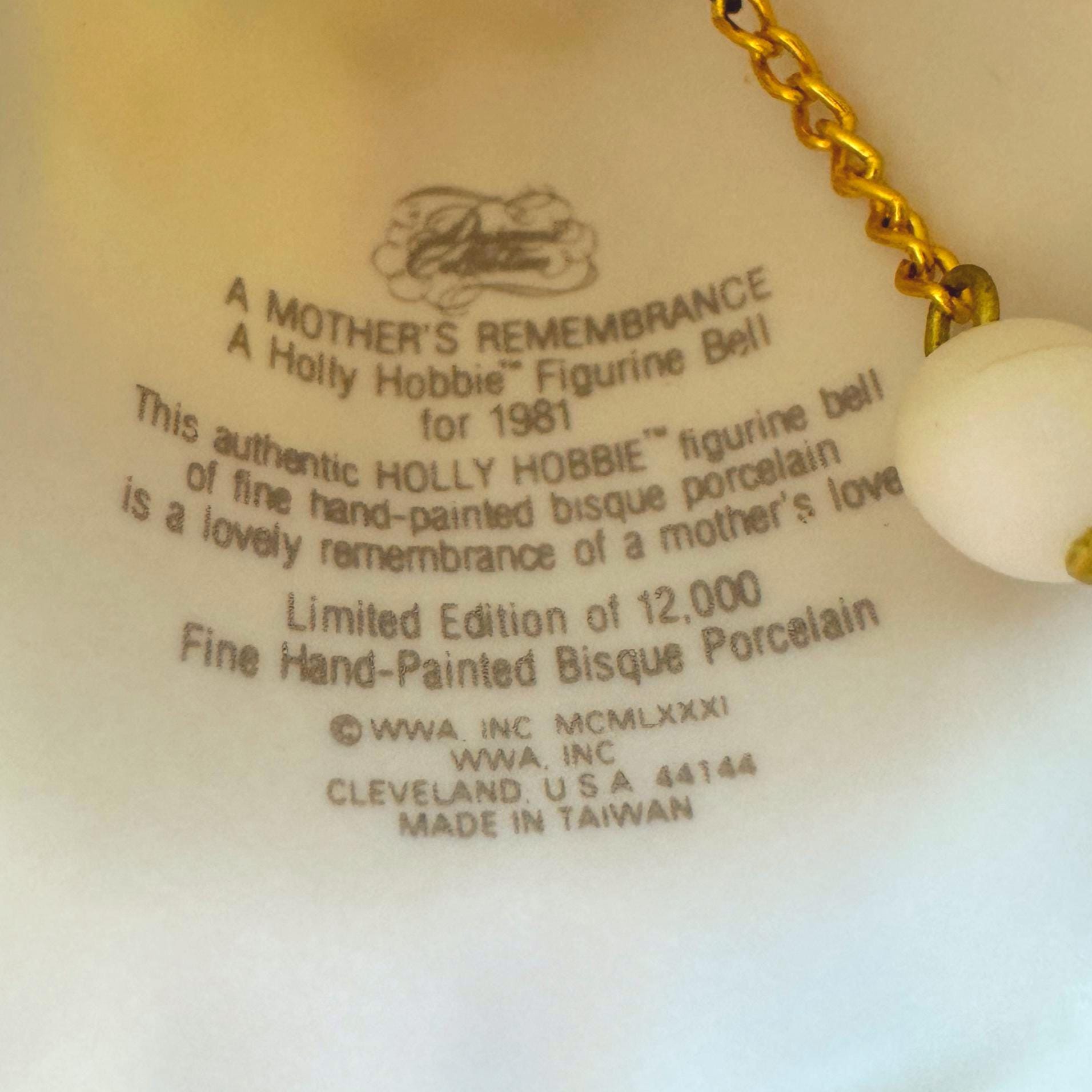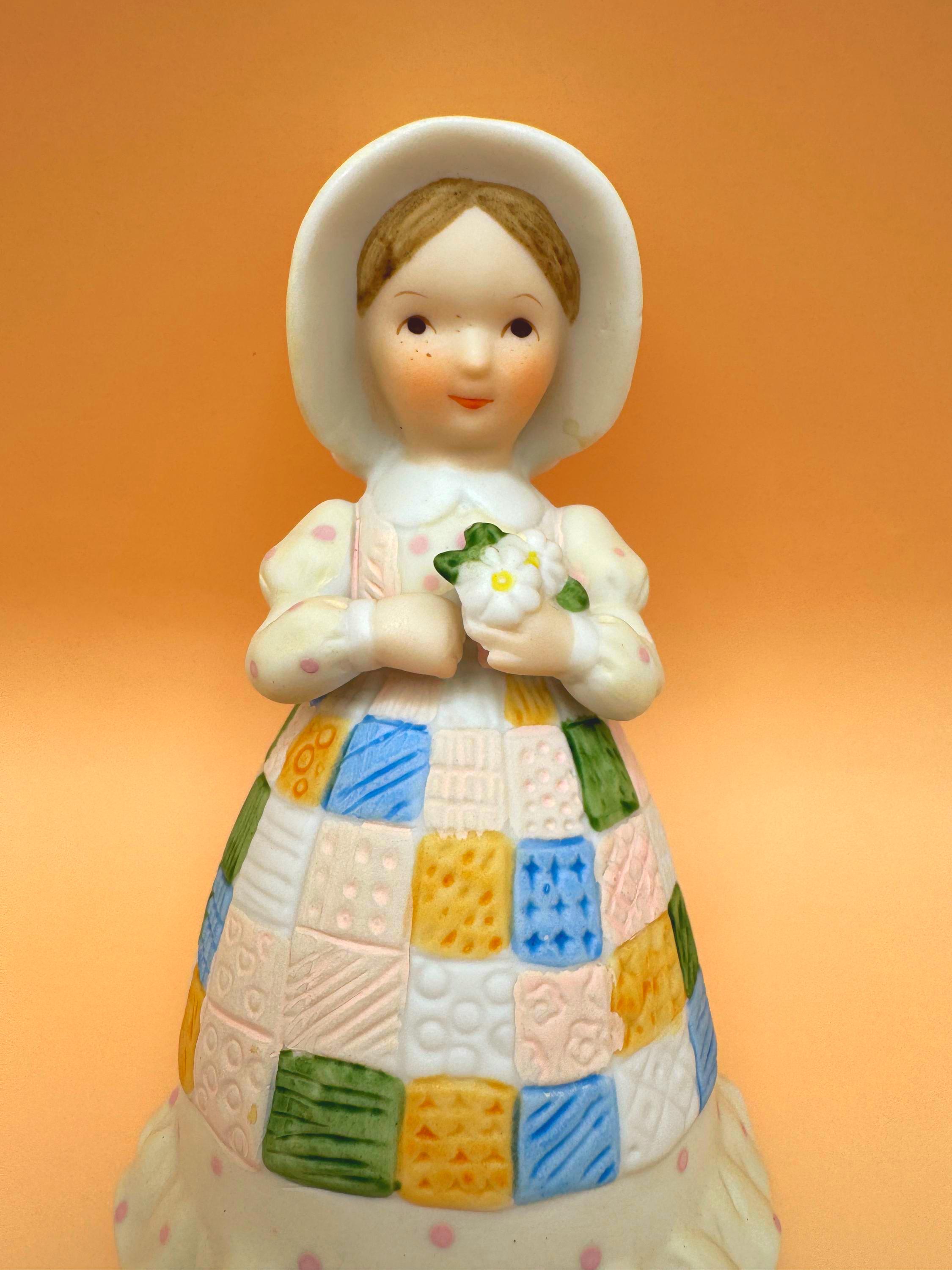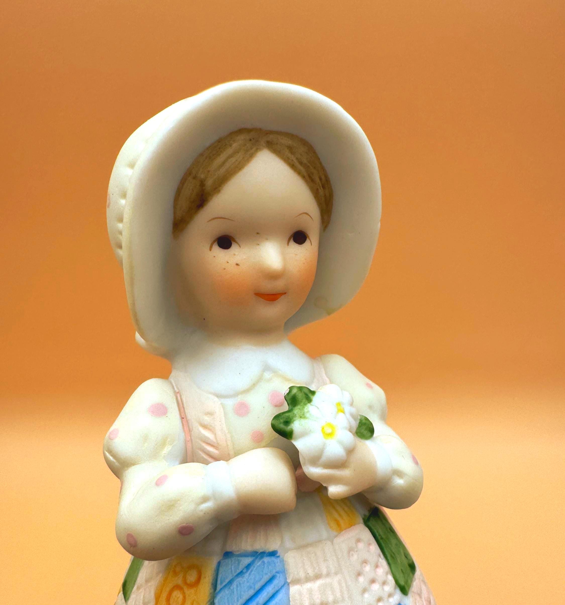 The softly textured bisque porcelain and gentle pastel colors give this bell a warm, storybook feel. Designed as both a figurine and functioning bell, it makes a wonderful display piece for collectors of Holly Hobbie memorabilia or vintage 1980s décor.