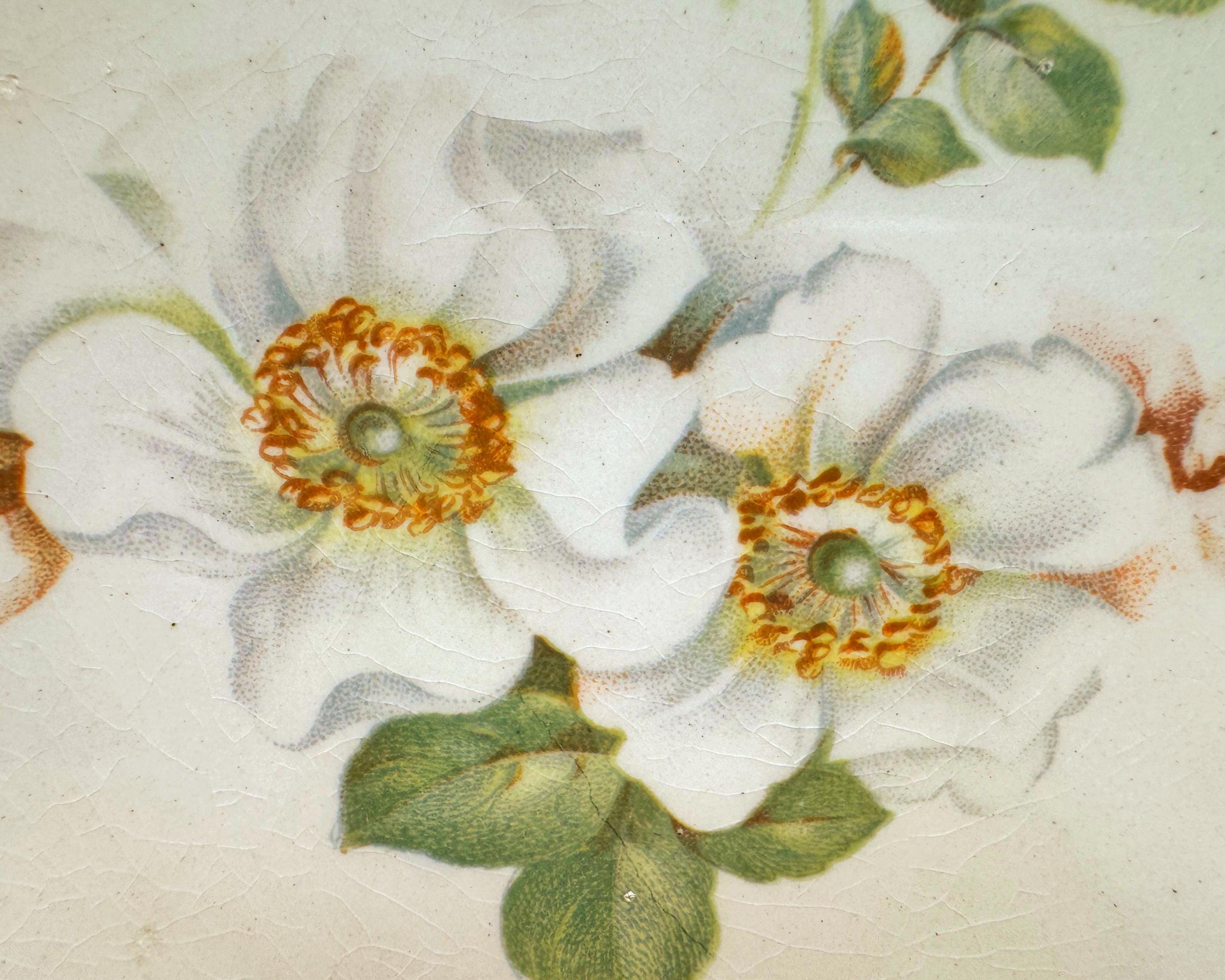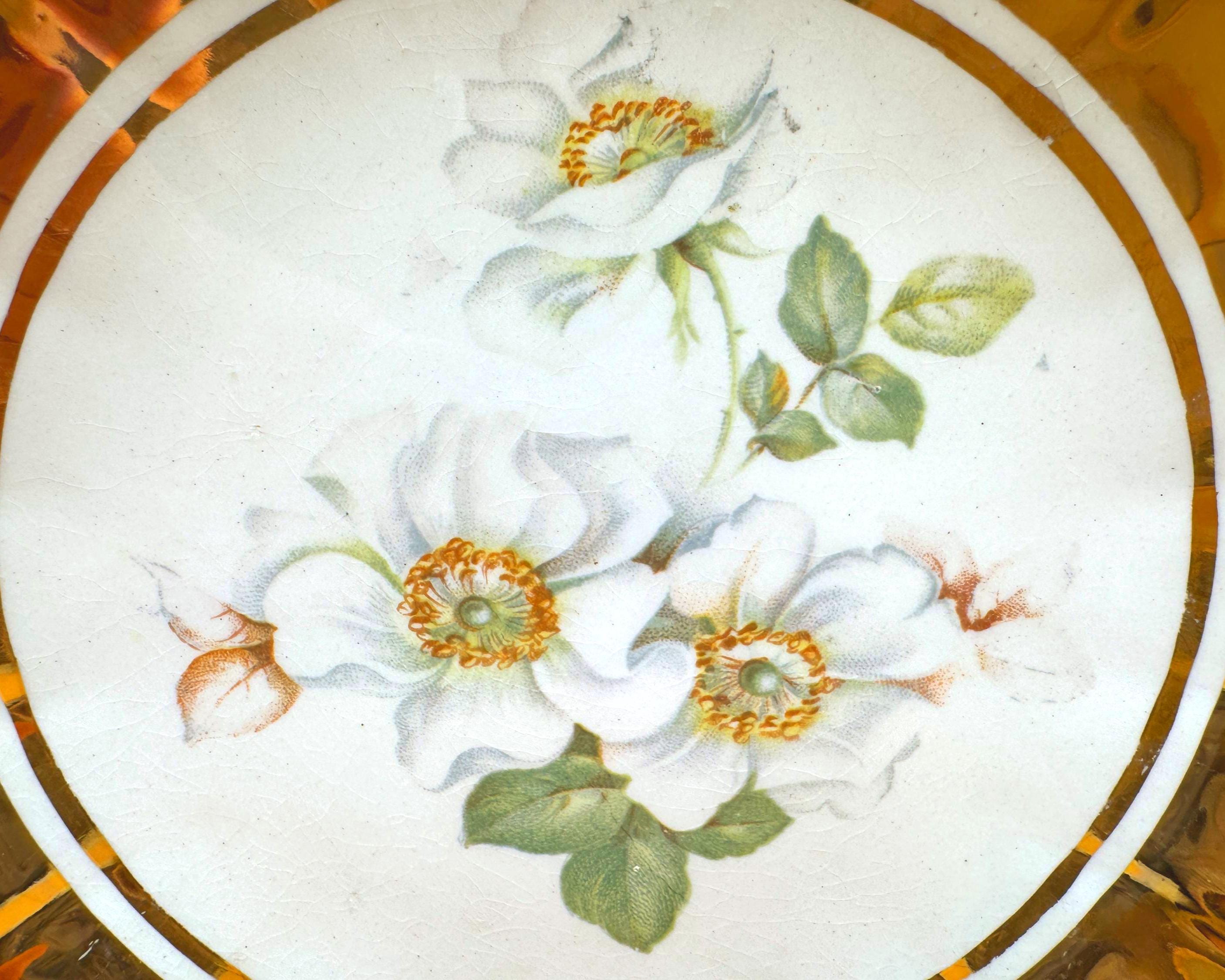 This piece is in lovely antique condition with no chips or cracks. There is visible crazing consistent with age, primarily in the center, along with some wear and light paint loss to the gold finish. These details are typical for antique pieces and add to its vintage character and charm. (See photos for more detail)