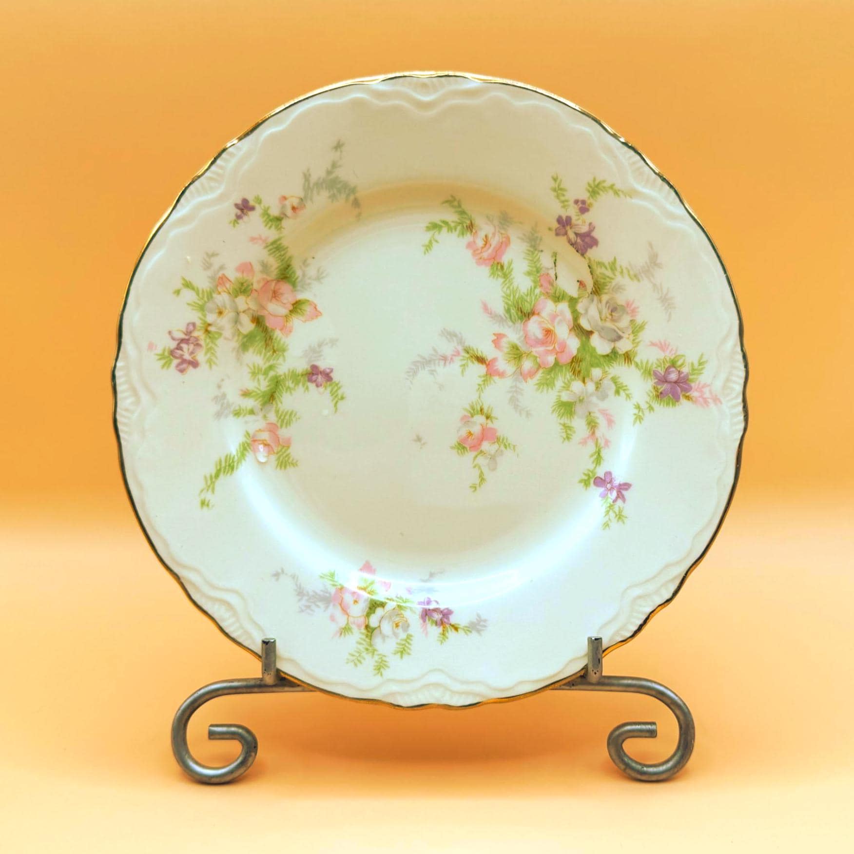 Wonderful vintage condition with no chips or cracks. There is some wear to the gold gilt trim and minor utensil marks consistent with age and gentle use. Overall, these plates remain very beautiful and display well. (See photos for more detail)