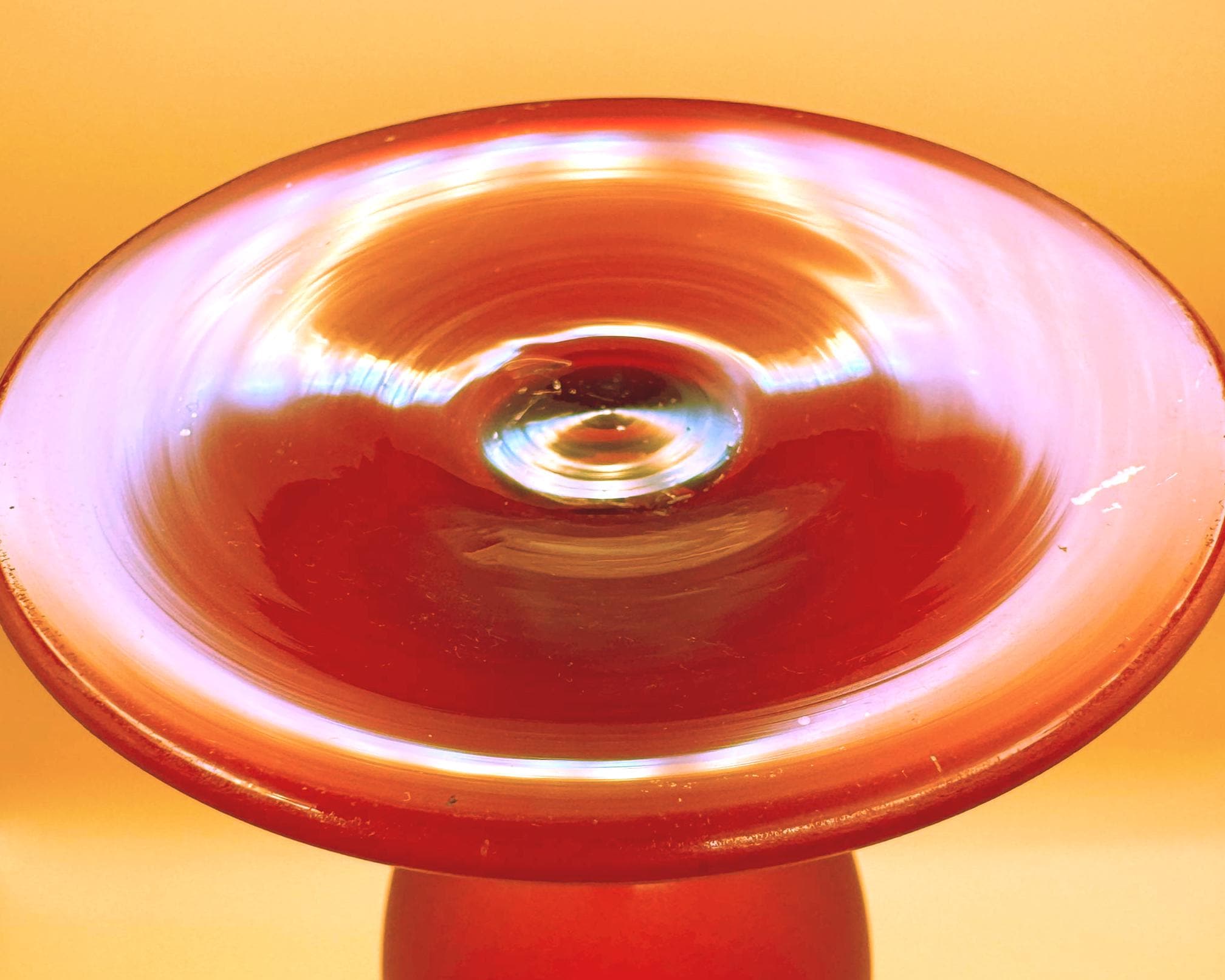A standout piece for collectors of art glass or anyone looking to add a pop of color and texture to their décor.