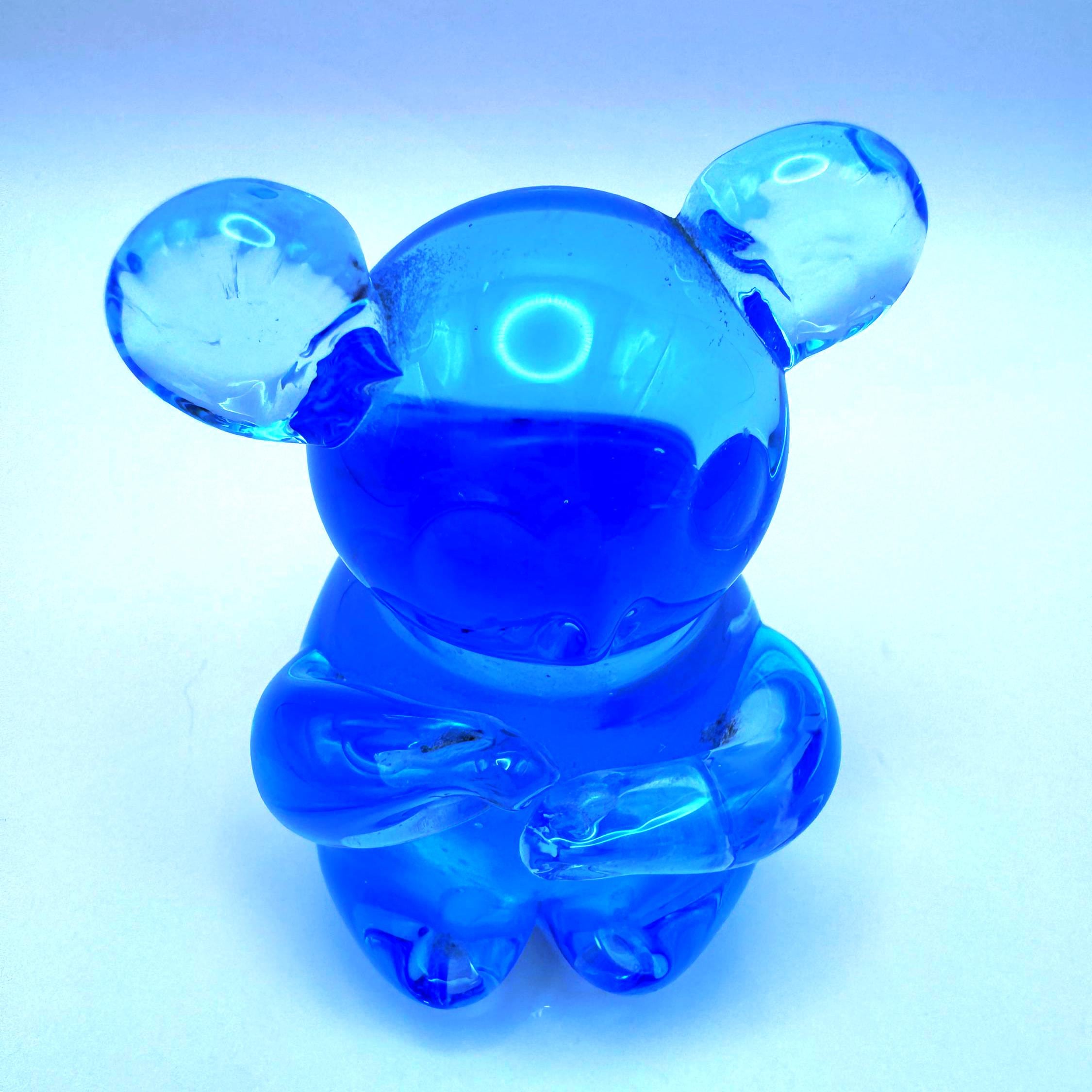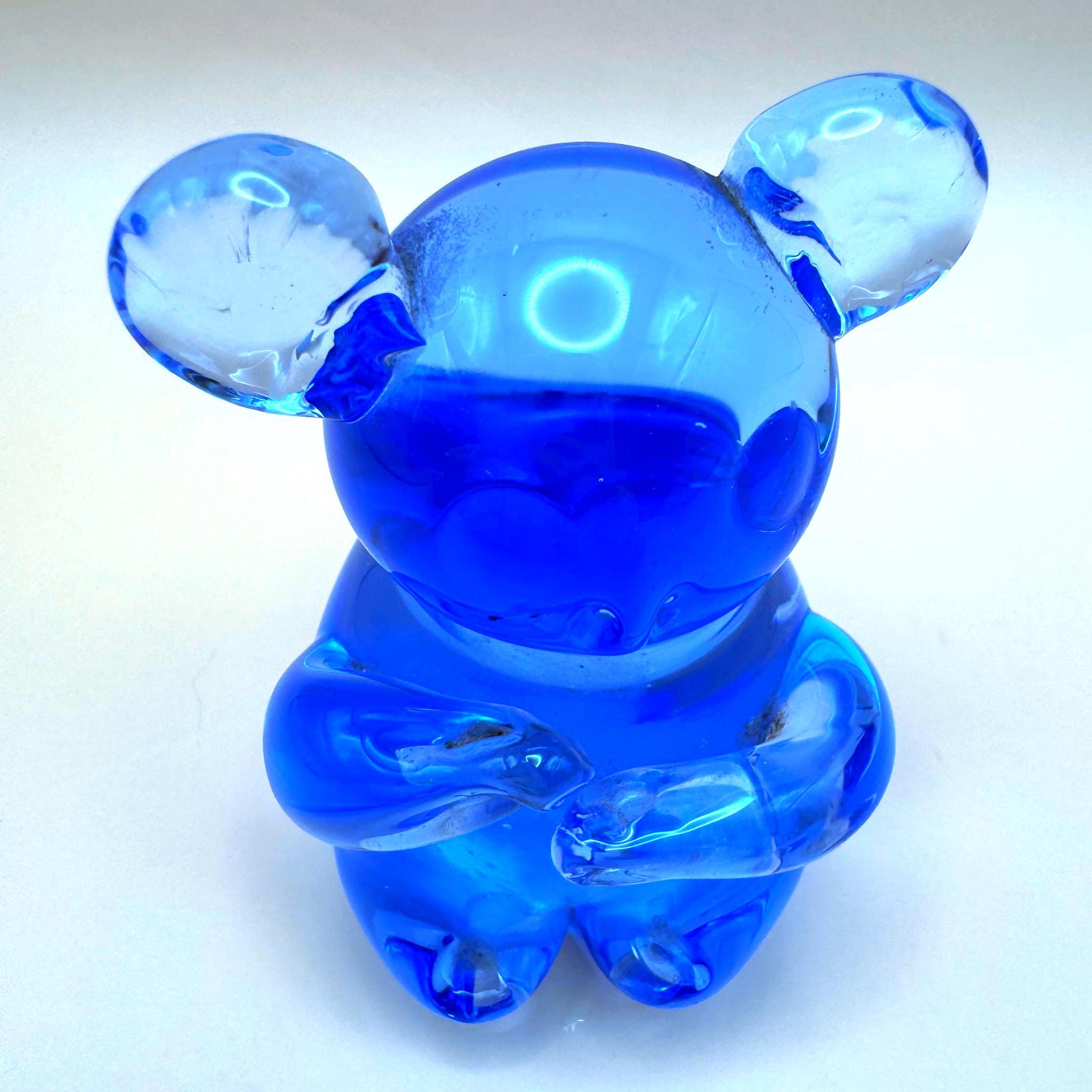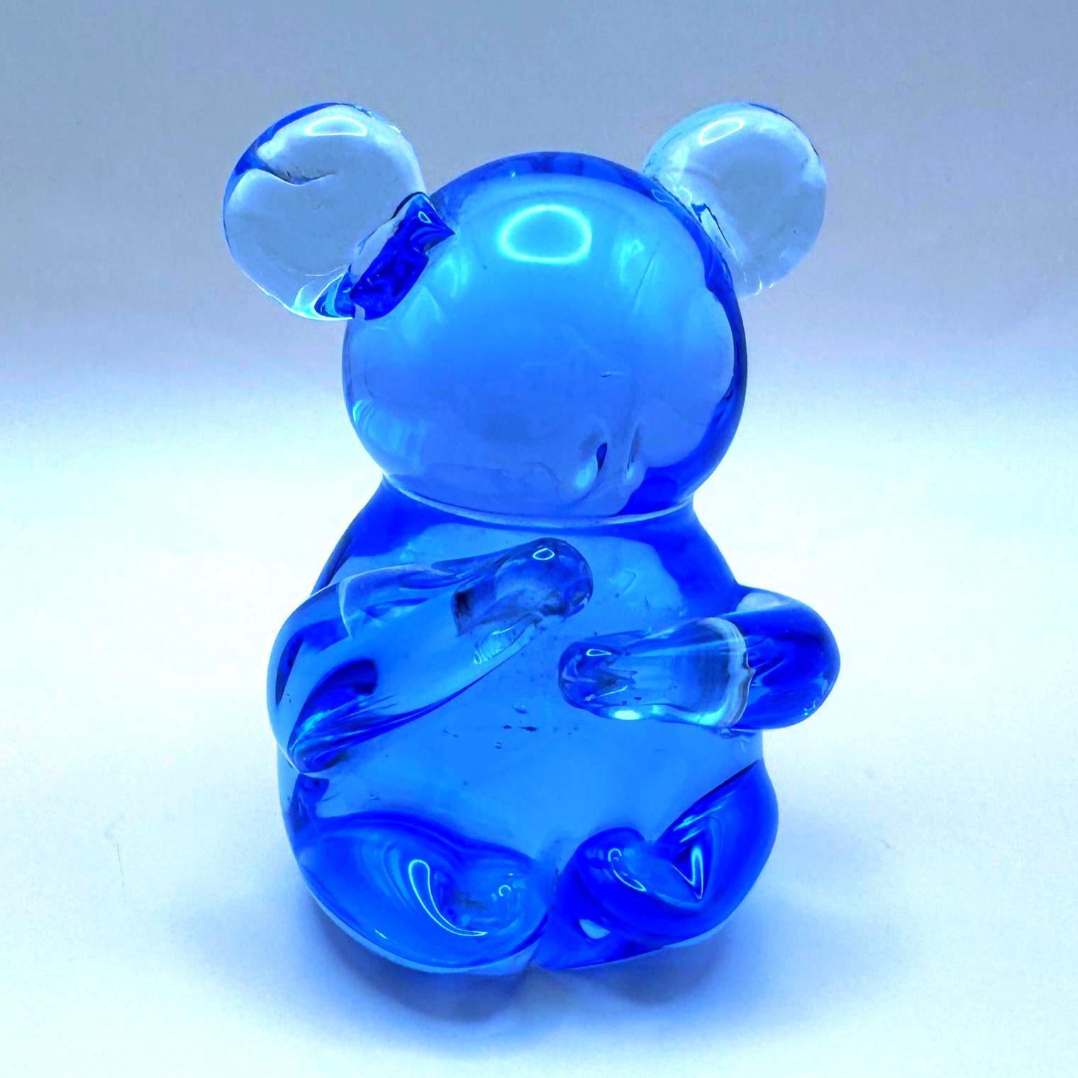 This adorable vintage cobalt blue glass koala bear is a beautifully crafted hand-blown piece with charming character and detail. The rich blue glass paired with clear accents in the ears and arms gives it a striking, eye-catching look.